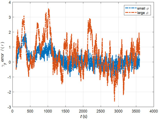 In the case of large and small initial misalignment angles, the error curves of the dynamic deflection deformation angle are shown in Figure 29, Figure 30 and Figure 31.