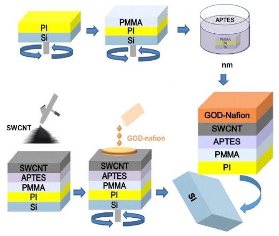 Schematic diagram of the fabrication process of SWCNT-based glucose sensors [123].