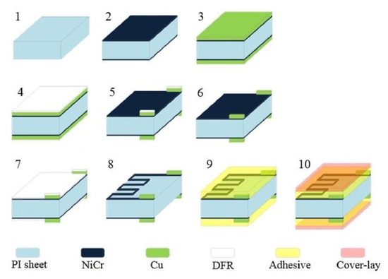 Schematic diagram of the fabrication steps of the Ni–Cr/Polyimide-based wearable heartbeat sensors [131].