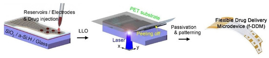 Illustration of the fabrication of flexible drug delivery micro-devices [153].