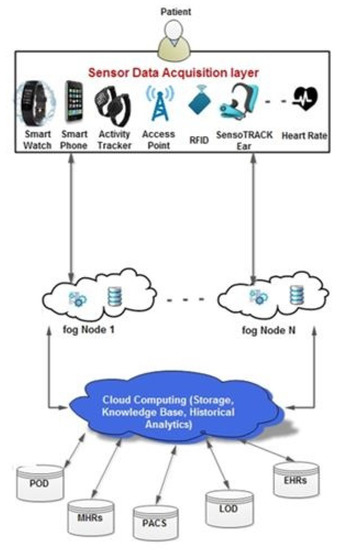 - Khaloufi, H.; Abouelmehdi, K.; Beni-Hssane, A. Fog computing for smart healthcare data analytics: An urgent necessity. In Proceedings of the 3rd International Conference on Networking, Information Systems & Security, Marrakech, Morocco, 31 March–2 April 2020; pp. 1–5. [Google Scholar]