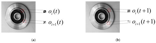 where I is the original image, is the position coordinate of the i-th agent at time t, and w is the window size. The initial position coordinate of the i-th agent is randomly generated with uniform probability. By default, the window is set to pixels because many experiments have shown that a window of pixels can already achieve good results. Taking two agents as an example, the schematic diagram of local observation is shown in Figure 3. As can be seen from Figure 3, the i-th agent move one step to the right and the -th agent move one step down from time t to . The step length here is equivalent to the window size.