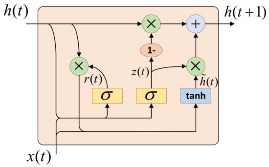 - Cho, K.; Van Merriënboer, B.; Gulcehre, C.; Bahdanau, D.; Bougares, F.; Schwenk, H.; Bengio, Y. Learning phrase representations using RNN encoder-decoder for statistical machine translation. arXiv 2014, arXiv:1406.1078. [Google Scholar]