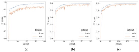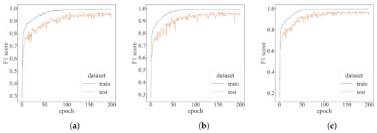 Modifying the number of trajectory samples C based on the default settings, the change in the -score is shown in Figure 12. As can be seen from the figure, when , the -score of the training dataset is relatively stable in the later stage. It can be seen from Table 1 that the change of the C value mainly affects the training time, and has little effect on the test time.