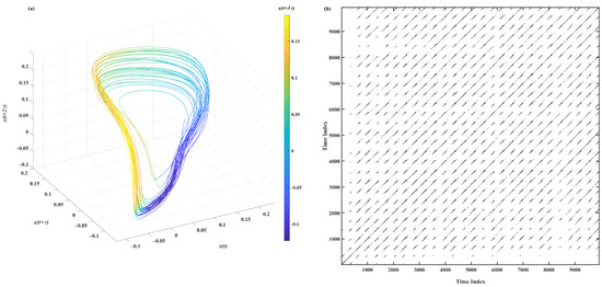 An example of (a) time-delay-reconstructed attractor and (b) the resulting RP obtained from one of the PPGs recorded in this study.