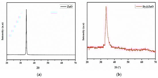 X-ray diffraction pattern of undoped ZnO thin film (a) and Dy-doped ZnO (b).