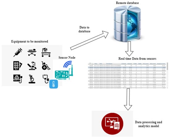 The defined sensors according to the critical health condition parameters were installed on different critical components of the selected equipment (autoclave sterilizer) and timestamped data were sent to the virtual database via the General Packed Radio Service (GPRS) communication device as it was the easiest method to continuously observe the data flow by means of an internet connection without frequent visits to the equipment.