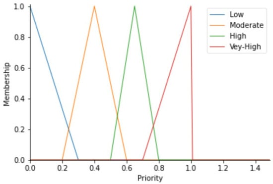 The maintenance priority linguistic variables recall the urgency levels as either low, moderate, high, or very high, which designate the need for maintenance action as either no action, far future, near future, or immediate maintenance action, respectively.