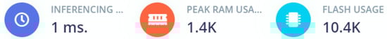 Summarizing the comparisons in Table 6, Table 7 and Table 8, both models performed well on data with minimum losses and a slight difference in losses from one model to another. In contrast, through comparing the models building up to TinyModel processes, LSTM requires significant experience in coding and requires much more training time than the Edge Impulse model. Edge Impulse limits the user to customizing their own detailed graphical presentations, but it is much more user friendly and easier for people with limited programming skills. Coming to the deployment on edge, Edge Impulse provides some estimated information, such as required device memory and processing latency, which is not given by the TensorFlow Lite platform. From the deployment simulation, referring to latency, LSTM may also reflect the higher power consumption than TinyModel_EI. Hence, TinyModel_EI is much easier to develop and a more suitable real-time model for deployment than TinyLSTM.