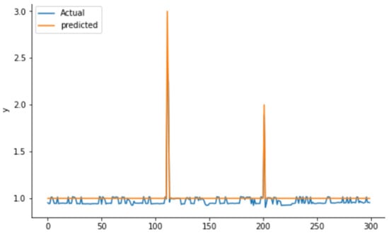To evaluate the real and predicted RUL relationship, the test dataset was used. Figure 11 shows that both real and predicted RUL (on Y-axes) are reasonably closer when you keep rounding a float number to an integer. The RUL in our real data is rounded to the closer integer at each time point whereas the predicted results are kept in floats.