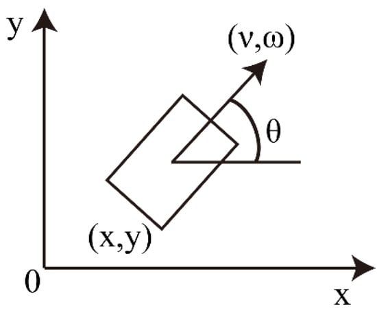 A USV is a typical under-actuated system which only has forward and steering capabilities without lateral driving force. At time t, the coordinates of the USV in the world coordinate system are represented by x(t) and y(t), and the direction angle (heading angle) of USV is represented by θ(t). As shown in Figure 2, the group of (x, y, θ) represents the kinematic position and pose of the USV.
