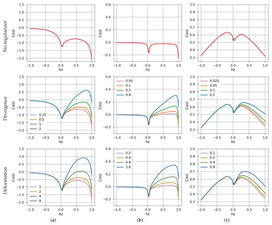 For the warp in (6), we obtain , which gives . Hence, (6) defines a constant divergence flow, and imposing a penalty on the degree of concentration of the flow field accounts to directly penalizing the value of the parameter .