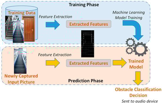 This sub-layer is responsible for processing the input, mainly the captured images, for the purpose of obstacle classification. The processing algorithm is developed using machine learning methods and can be divided into the several stages, namely feature extraction, machine learning methods, model training and prediction.