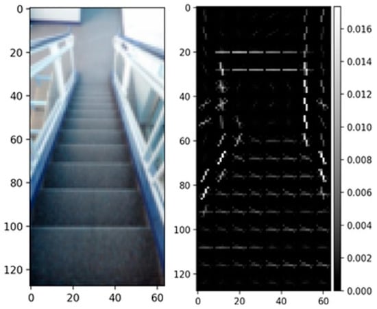 - To extract HOG, the skimage.feature library is imported [43]. A total of 3780 features were extracted from each image. Figure 7 shows a sample of a resized dataset image and its corresponding HOG representation.