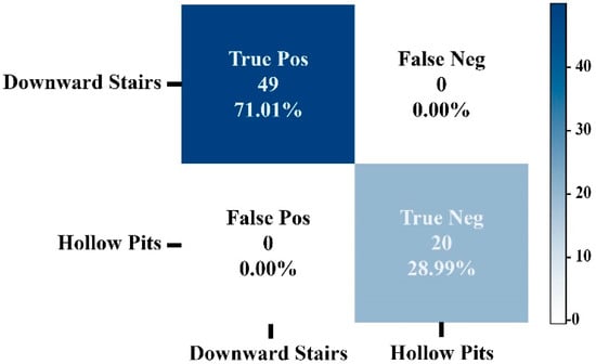 Figure 8 shows the confusion matrix of model 1 using the SVM classification algorithm. As can be noticed, only three images were classified falsely out of 242 test images. Similar results were obtained for the second model. Figure 9 shows the confusion matrix of model 2. As can be seen from Figure 9, all images were classified correctly. Thus, the trained SVM models were considered and uploaded on the smart cane and used for real-time prediction.