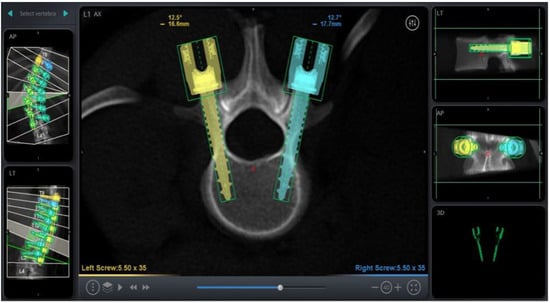 - Baky, F.J.; Milbrandt, T.; Echternacht, S.; Stans, A.A.; Shaughnessy, W.J.; Larson, A.N. Intraoperative Computed Tomography-Guided Navigation for Pediatric Spine Patients Reduced Return to Operating Room for Screw Malposition Compared With Freehand/Fluoroscopic Techniques. Spine Deform. 2019, 7, 577–581. [Google Scholar] [CrossRef] [PubMed]