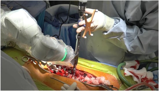 - Gonzalez, D.; Ghessese, S.; Cook, D.; Hedequist, D. Initial intraoperative experience with robotic-assisted pedicle screw placement with stealth navigation in pediatric spine deformity: An evaluation of the first 40 cases. J. Robot. Surg. 2020, 15, 687–693. [Google Scholar] [CrossRef] [PubMed]
