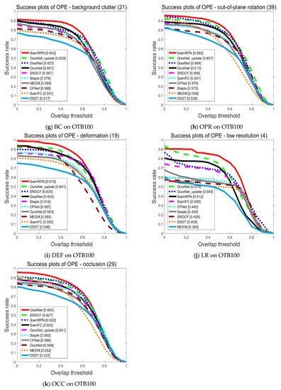 - Li, P.; Chen, B.; Ouyang, W.; Wang, D.; Yang, X.; Lu, H. Gradnet: Gradient-guided network for visual object tracking. In Proceedings of the IEEE/CVF International Conference on Computer Vision, Seoul, Korea, 27 October–2 November 2019; pp. 6162–6171. [Google Scholar]
