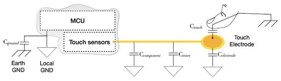 When the touch electrode is not in contact with a finger, the capacitance C of the circuit is given by the combination of all the parameters (Table 1).