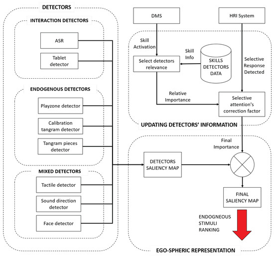9]. To ensure that a social robot can handle multiple stimuli while focusing on its current task, a multisensory endogenous attention-based system is necessary to filter out irrelevant stimuli. In addition, these systems allow for better resource management because they give priority to the detectors that are associated with the current task.