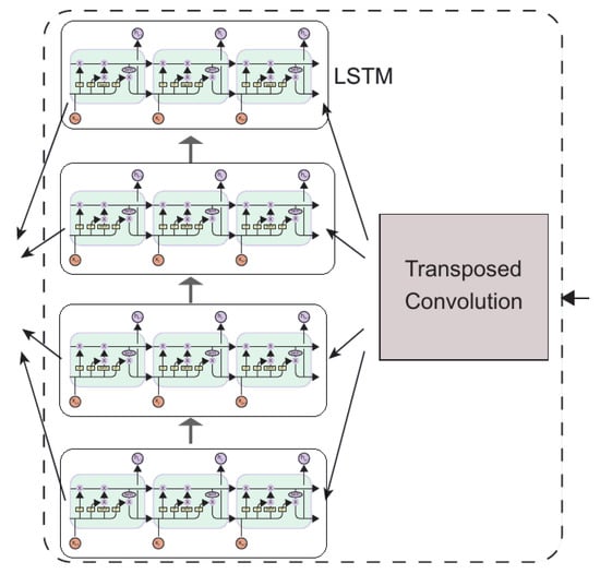 The output of the Temporal Pooling module is the input to the transposed convolution, which uses a kernel size and stride of 8 to increase the temporal resolution of features while reducing the number of features. After layer normalization, these features are fed into multiple recurrent networks. Multiple recurrent network layers are arranged in parallel, the input of each layer is from the transposed convolution, and the hidden state of each layer is from the previous recurrent network layer.