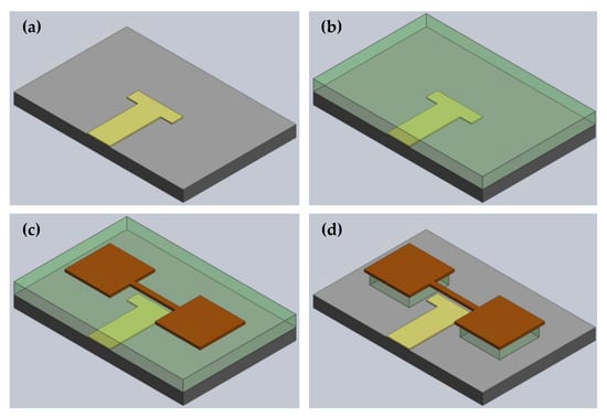 The wafer was diced into smaller pieces with an automatic dicing. Finally, the structure was released by etching the sacrificial layer with a photoresist stripper, as shown in Figure 4d.