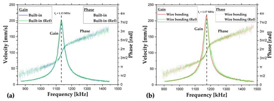 The results of frequency sweep measurements for (a) built-in and (b) wire bonding chips.