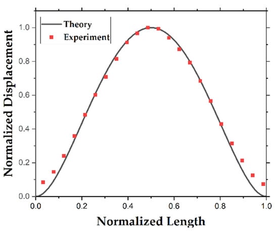 The experimental mode shape obtained with built-in packaging is shown in Figure 12, as well as the theoretical mode shape.