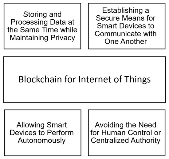 Blockchain is the final piece of the puzzle in resolving IoT privacy and dependability issues. The blockchain’s inherent trustless, autonomous, and decentralized characteristics make it suited for use in a variety of scenarios. The blockchain technology, for example, may store a permanent record of smart gadgets [121,122]. Furthermore, the implementation of smart contracts may allow smart devices to perform autonomously, avoiding the need for human control or centralized authority. In addition, blockchain can establish a secure means for smart devices to communicate with one another [123,124].