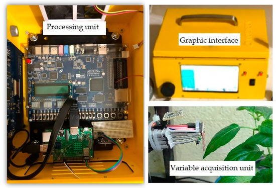 - Millan-Almaraz, J.R.; Romero-Troncoso, R.D.J.; Guevara-Gonzalez, R.G.; Contreras-Medina, L.M.; Carrillo-Serrano, R.V.; Osornio-Rios, R.A.; Duarte-Galvan, C.; Rios-Alcaraz, M.A.; Torres-Pacheco, I. FPGA-Based Fused Smart Sensor for Real-Time Plant-Transpiration Dynamic Estimation. Sensors 2010, 10, 8316–8331. [Google Scholar] [CrossRef] [PubMed] [Green Version]