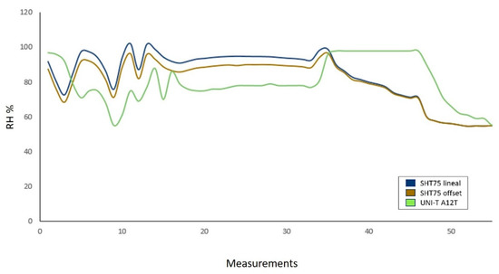 The measured values obtained by the sensors were compared with commercial equipment for air temperature and relative humidity [51], leaf temperature [52], and solar radiation [53]. From this comparison, an 11.66% average error was obtained.
