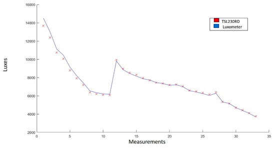 - Electronica Steren. Medidor Digital de Luminosidad (Luxómetro). Available online: https://www.steren.com.mx/medidor-digital-de-luminosidad-luxometro-her-408.html (accessed on 8 March 2022).