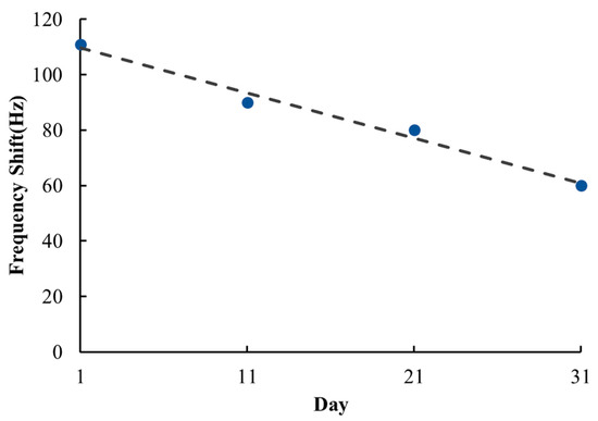 where represents the frequency response on the 1st day, and represents that on the 31st day. In this study, the frequency response measured on the 31st day was only 54% of that on the 1st day.
