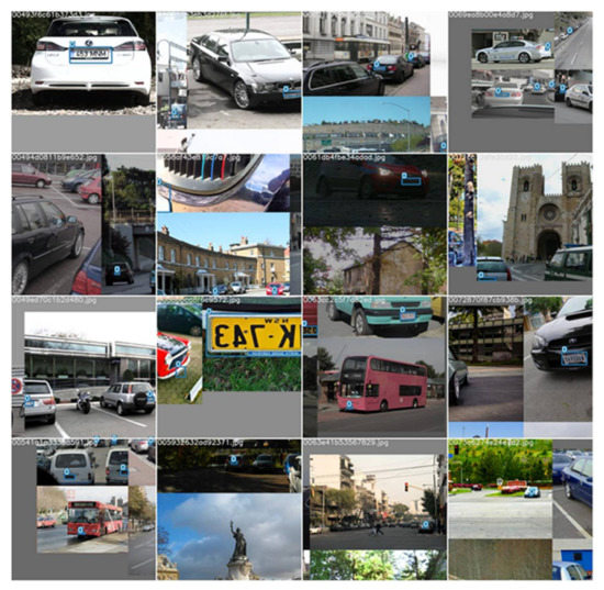 Random samples from the dataset (https://www.kaggle.com/datasets/dataturks/vehicle-number-plate-detection, accessed on 5 June 2022) (https://storage.googleapis.com/openimages/web/index.html, accessed on 5 June 2022).