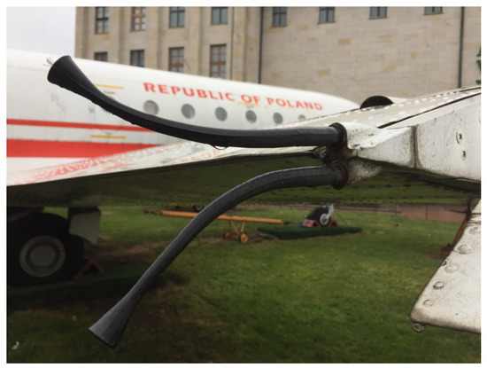 24]; assuming that the dielectric compound of the aluminum antenna (the supportive substrate of the wire) is partially composed of polyethylene, the maximum electric field strength resulting from this mechanism can be approximated as +300 V/m (lower than the mean value for different types of polyethylene due to expected irregularities in the process from the rugged airfield surface) [