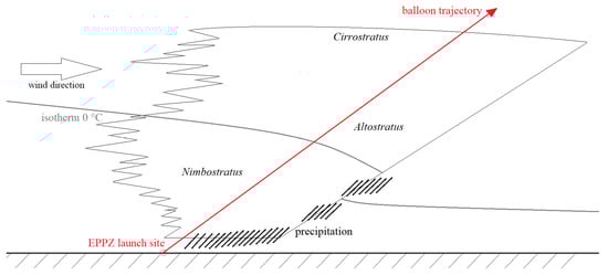 27]. In the current analysis, the freezing of possible water that remains accumulated on the antenna system may occur in the Ns clouds at the altitude of the 0 °C isotherm, around the altitude of 4.2 km from the data set in