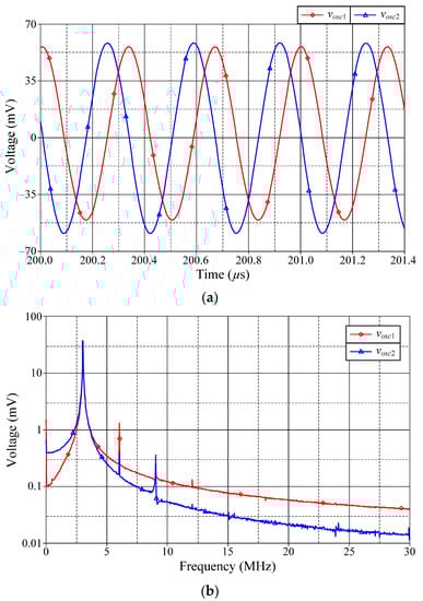 As can be observed from Equations (30) and (31), the OC can be controlled simply by changing the value of a grounded resistor R without altering the OF, which can be tuned separately using the transconductance gmB. As a result, the parameters OC and OF of the proposed quadrature oscillator in Figure 4 are orthogonal controllable.