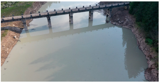 It is interesting to note the possibility of having some artifacts that could affect the points cloud computation and, therefore, the water level estimate’s accuracy. In the case of a flat water surface and in particular lighting conditions, specular reflections may occur (as is evident in Figure 8) where the reflections of clouds, of the bridge and of other “objects” that are present on the banks are visible.