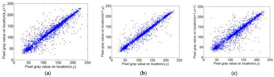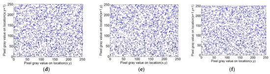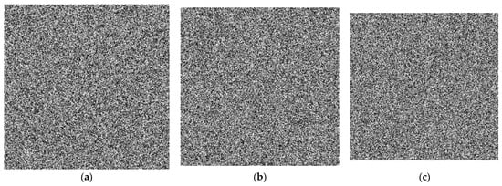 The key is sensitive if a slight change in the key with other keys remaining unchanged will result in a completely different decryption result. Figure 7 shows sensitivity analysis results of security keys. Figure 7a–c show the decrypted images corresponding to the encrypted image Figure 6b with the keys = 0.16 + 10−14, k1 = 32.5 + 10−14, 𝜇 = 3.999 + 10−14, respectively. Therefore, the proposed algorithm scheme exhibits high key sensitivity.