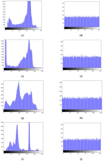 The test images include “Lena”, “Boat”, “Cameraman”, “Peppers”, “House”, “Lake”, “Moon surface”, and “Plane”, and the size of eight gray images is 256 × 256 (from USC-SIPI Image Database []). The keys are as follows: = 0.16, = 0.36, = 0.56, 𝑘1 = 32.5, 𝑘2 = 34.3, 𝑘3 = 28.1, 𝜇 = 3.999, = 1000, = 2, = 1, = 1, = 3. All experiments are conducted in MATLAB R2012b. The operating system is Microsoft Windows 7. The hardware environment is a 2.9 GHz CPU and 16 GB memory. The simulation results of the proposed scheme on the above four gray images are shows in Figure 6.