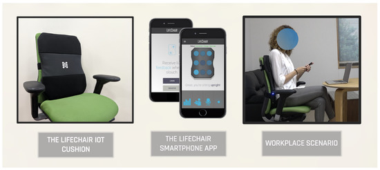 With recent advances in medical and health sciences and the accessibility of information about healthy living, the awareness of the importance of well-being at work is rising. However, the stresses and commitments associated with modern living can hinder efforts towards achieving better health and well-being on a daily basis. In particular, the increase in desk-bound work and the use of computers and hand-held devices such as smartphones and tablets has exacerbated the problems of sedentary lifestyles and poor sitting posture [1]. A systematic review based on accelerometry measurement of 11 large-scale population studies found that adults spend approximately 10 h a day or approximately 65–80% of the day performing sedentary behaviors [2]. Common sedentary behaviors that most people engage in daily occur while working, commuting, and many leisure activities that require prolonged sitting. Slouching in particular has been termed “the new smoking” [3]. Slouching while sitting is a state where the person’s posture is imbalanced forward or to the sides in addition to any combination of rounded shoulders, forward head posture, and angled neck or lumbar. A vast body of research has shown that poor sitting posture and prolonged sitting lead to a wide range of physical and mental health issues such as lower back pain, neck pain, headaches, respiratory and cardiovascular issues, digestive issues, and an overall higher risk of disease and death [4,5,6,7]. It also contributes to multiple mental health issues such as poor mood, fatigue, low productivity, and depression [8,9]. Furthermore, the lockdown measures introduced by many governments in response to the COVID-19 pandemic led to a surge in working from home (WFH), which had a serious impact on the sedentary and sitting habits of remote workers. While many workplaces are well-equipped with ergonomic chairs and desks, many home settings are far from ideal for prolonged sitting and working from home. Moretti et al. (2020) reported that this lack of ergonomic office furniture in working from home settings may be linked with poorer posture and the onset of musculoskeletal disorders (MSDs) [10].