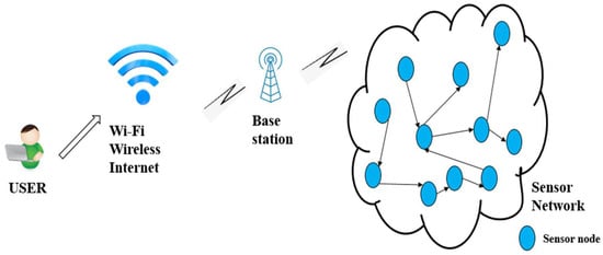 A user communicates through the internet with a base station directly or indirectly connected with all sensor nodes distributed in the area to be monitored. Figure 1 depicts a typical design of a WSN [19].