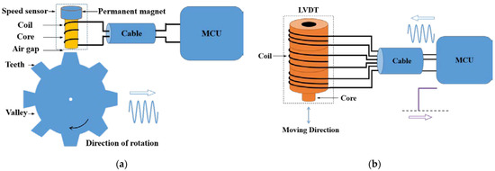 Working process of sensors: (a) Speed sensor; (b) LVDT sensor.