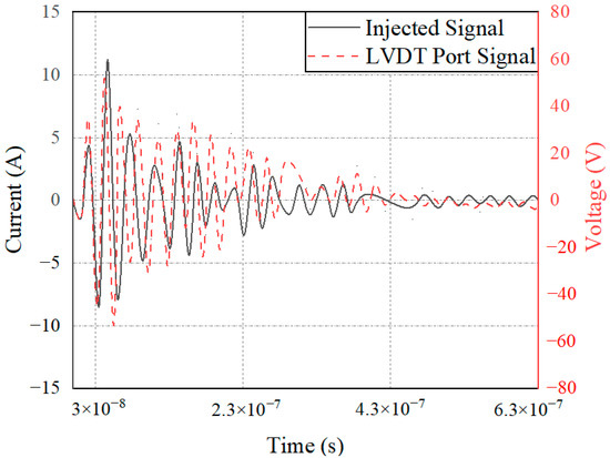 LVDT sensor terminal coupling voltage signal in the pulse current injection (PCI) test.