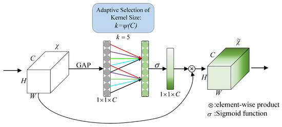 ECA-Net is an improved SE-Net [19] attention mechanism network. Compared with SE-Net, ECA-Net removes the fully connected layer in SE-Net and directly uses one-dimensional sparse convolution operation on the features after global average pooling to optimize the fully connected layer operation while maintaining network performance. At the same time, the number of parameters of ECA-Net is greatly reduced.