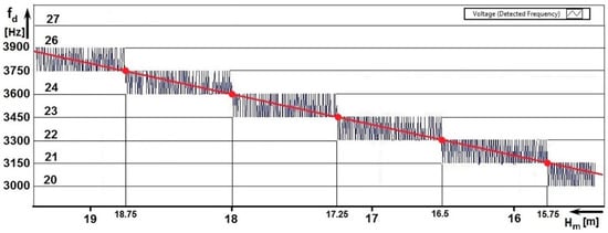 For each radio altimeter, it is possible, based on the parameter—the total frequency lift , to calculate its methodological error according to the mathematical relation (7). In the case of the measured radio altimeter, this is the mentioned value of 0.75 m.