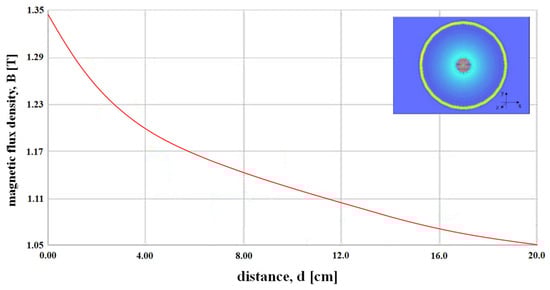 Simulation result of the magnetic flux density with respect to the distance from the magnet.