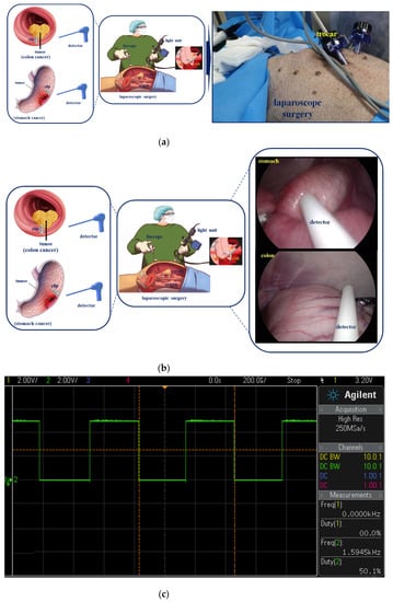 - Choi, W.J.; Moon, J.H.; Min, J.S.; Song, Y.K.; Lee, S.A.; Ahn, J.W.; Lee, S.H.; Jung, H.C. Real-time detection system for tumor localization during minimally invasive surgery for gastric and colon cancer removal: In vivo feasibility study in a swine model. J. Surg. Oncol. 2017, 117, 699–706. [Google Scholar] [CrossRef]