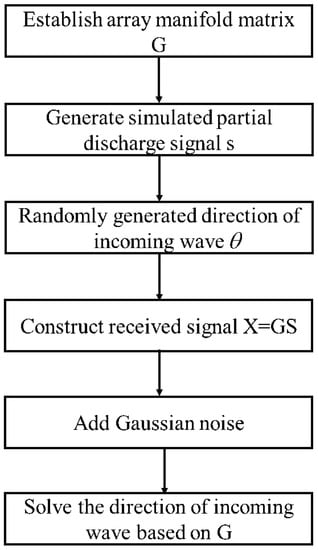 To explore the performance of the algorithm under different SNR, the Dir-MUSIC algorithm is simulated and tested on the MATLAB platform to verify its reliability. The simulation process is shown in Figure 2.