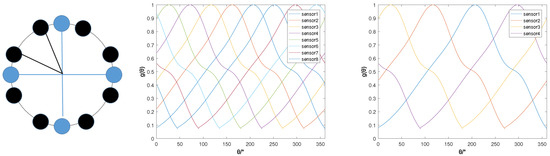 Direction-finding performance is also strongly related to the number of array elements. In traditional spatial spectrum estimation, the number of array elements determines the array aperture. The larger the number of array elements, the larger the array aperture is, and the direction-finding performance is better. On the premise that the antenna pattern of a single element is determined, the number of elements determines the array manifold. Due to the miniaturization requirement of the array, the radius of the array cannot exceed the radius R of the inspection robot chassis, which is about 20 cm. Assuming that the radius R of the uniform circular array is constant, then the number of array elements affects the distance between adjacent array elements, and different array element distances make different steering vectors, as shown in Figure 6.